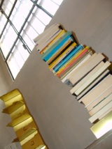 Per forza. Non è solo un sogno realizzato. Di più, potete toccarlo: è un oggetto reale. Perché la straordinaria scultura di Bruno Rainaldi che ha ribaltato in verticale la tradizionale libreria vincendo premi internazionali e conquistando migliaia di persone per la sua doppia essenza - funzionale e poetica - sembra essere nata insieme alle pile di libri apparentemente disordinate che hanno creato il nuovo mondo della Poesia dorsale. Un'idea, quest'ultima, che è in realtà una suggestione visiva del graphic designer e fotografo Silvano Belloni. Che si poteva mettere in pratica soltanto in uno dei boschi selvaggi di volumi che esistono in tutte le case dove di libri ci si nutre. Come quella della giornalista Antonella Ottolina, che legge per vivere (o viceversa?) e li ha messi uno sopra l'altro in modo che i titoli si concatenassero fino a formare dei versi (ed ecco la Poesia dorsale...). Come quella di Bruno Rainaldi, che da quelle pile di libri era già rimasto affascinato fino ad immaginarle così alte da sfidarne la stabilità (ed ecco Ptolomeo...). Non restava che incontrarsi. E' successo...